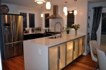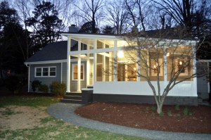 A new look for a 1950’s house in University Park. The owner decided that the house needed a change. The small existing entry is understated and difficult to maneuver due to the size of the stoop and the swing of the storm door. A proper formal entrance has been introduced along with a multi-functional screened porch. The existing dining room is opened up to the screened porch by a fully glazed sliding door and side panel. The kitchen has been reorganized to create a more usable layout and finishes have been upgraded to bring back a sense of modernism to the outdated existing kitchen. The screened porch boasts a beautiful porcelain tile floor and reclaimed historic tin ceiling panels.