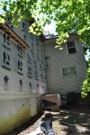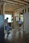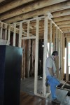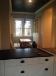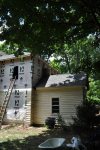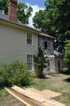 This is a fascinating house owned by a fabulous couple. The house is located in the downtown historic district in Hillsborough NC. From this photo you can see the beautiful stacked front porches and architectural details that hearken back to a time around the civil war. In actuality, this house (the one we see) was built in 1990! What you can not see is a tiny house in the rear of the structure that we think actually predates the civil war. The previous owner moved the historic structure to this lot and built a large two story addition adjacent to it. The two houses are merged on the interior by a deep cased opening. The historic structure, we think was potentially built by a lower class laborer due to the lack o detailing and architectural features. It was built to shelter and nothing more. Where the two houses were joined, a tricky roof condition was created. While being both unsightly and problematic to maintain, this area was prone to leaks and had fairly low ceilings. The interior was plain and simple, lacking the elegance of the new addition. The owners wanted to create more space upstairs with an addition over part of the historic structure and to completely redo the interior of the back part of the house. The shed roof over the existing kitchen was also a cause for leaks so this would need to be addressed during this project. The new addition upstairs includes a new master bathroom (existing space was reorganized to accommodate most of the bathroom, only the shower is located in the new footprint), a new master walk-in closet, a new full hall bath, a new laundry room and a new guest room. Downstairs was reorganized to include a large kitchen with ceiling heights to match the rest of the house, a butler’s pantry/office area, a beautiful banquet with bookshelves above the seating, a powder room, and a mud room. This all was planned to stay in the existing footprint. Construction is almost complete!